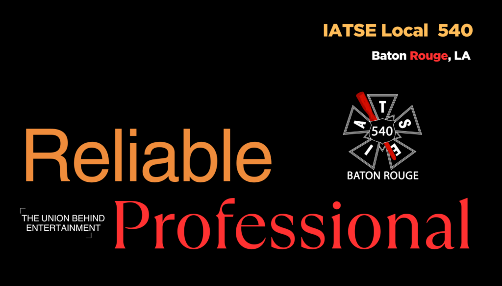 IATSE Local 540 was chartered in 1919. Serving the Baton Rouge Community for all Behind the Scenes Entertainment stagehands and technicians. Local 540 has a long history of providing crew and skills to arts organizations such as Baton Rouge Ballet Theatre, Baton Rouge Symphony Orchestra, Opera Louisiane, LSU Opera, and many more. Venues we service are Raising Cane’s Rivercenter, Manship Theatre, Shaver Theatre, Reilly Theatre, Independence Park Theatre and many more dedicated and temporary performance spaces.